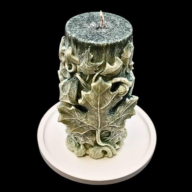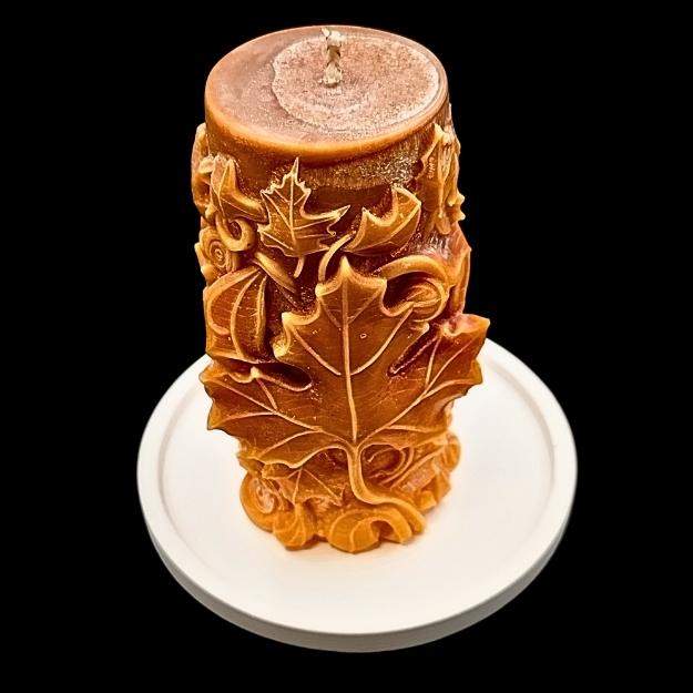 Poczuj otulający, ciepły nastrój jesieni bez względu na porę roku! Nasza świeca "Jesienny Blask" to hołd złożony pięknu natury, zamknięty w niezwykłej formie. Misternie rzeźbiona, przedstawia kaskadę liści – od rozpoznawalnych liści klonu po delikatne, wijące się pędy, które oplatają całą powierzchnię świecy. Naturalny, ziemisty odcień wosku doskonale oddaje barwy zmieniającego się lasu, a jej kolumnowy kształt nadaje elegancji.